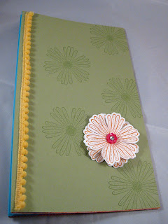 This was made with that wonderful Pear Pizzazz that is going away along with the scallop oval die. I did teach one technique with this album. You can't really tell, but the flower feels/looks like suede. Here is another video on how to make suede flowers.